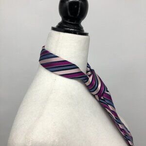 Multicolor pink/purple toned diagonally striped 100% silk tie