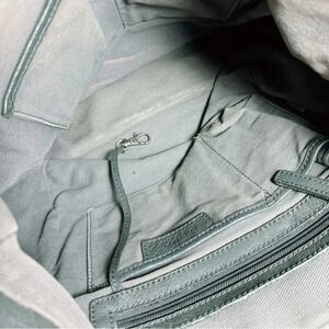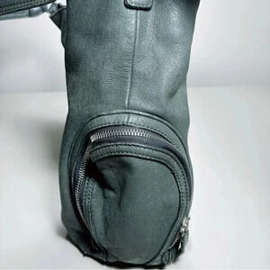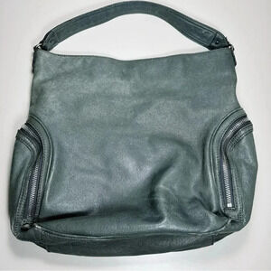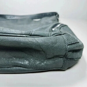 WHAT: Sturdy structured shoulder bag with silver harware. One main compartment with snap button. Multiple exterior zipped pockets