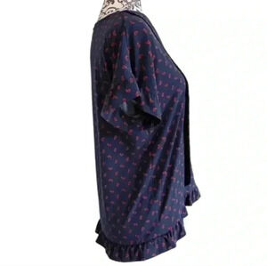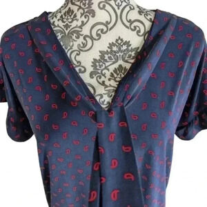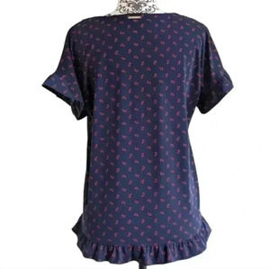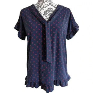 Michael Michael Kors Top Tie Neck Navy Blue Red Print Ruffled Women's size Small