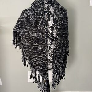 Description: This fringed wrap brings fringed lines and soft warmth to your ensembleFringed hemAbout 33" from shoulder to hemAcrylic