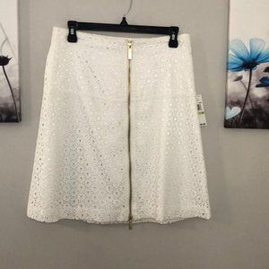 Michael Michael Kors White Lined Skirt Gold Zipper