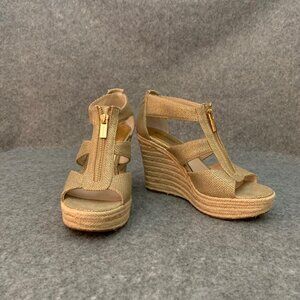 Michael Michael Kors Women's Heel Front Zip Wedge Open Toe Shoes