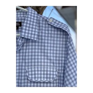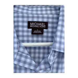 Michael Michael Kors Blue Plaid Button Up Shirt Roll Tab Sleeves Epaulets Sz L