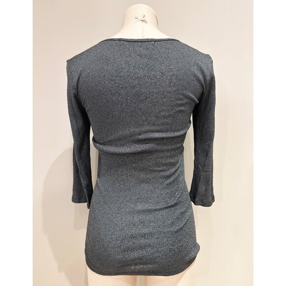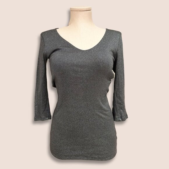 Michael Stars Grey Top V Neck Size OS 3/4 Sleeve Shimmer
