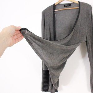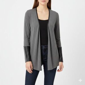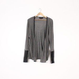 *Michael Studio Collection Grey Cardigan with Faux Leather Cuffs
