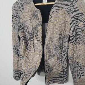 Michael Tyler Mixed Animal Print Jacket Blazer Zipper Front Gold Shine Size XS