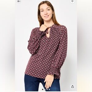 Michael by Michael Kors Burgundy Geometric Print V-Neck Long Sleeve Top sz 4X