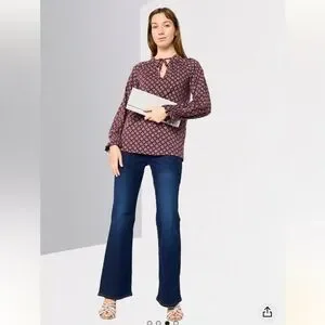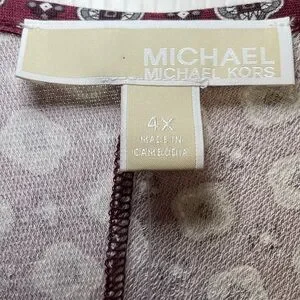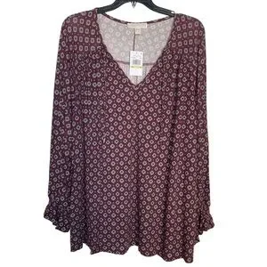 Michael by Michael Kors Burgundy Geometric Print V-Neck Long Sleeve Top sz 4X