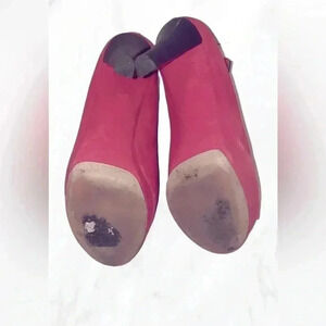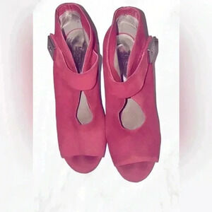 Michael kors cherry red and silver open toe suede leather ankle boot 8.5