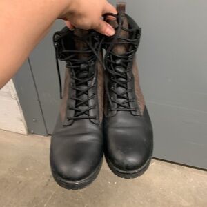 Michael kors monogram Black and Brown Lace-Up Ankle Boots with zipper