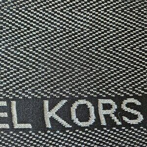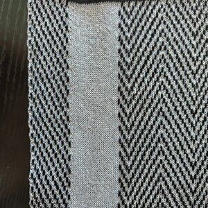 Scarf is double sided, one side more silver, the other more black. Hat is light grey with decorative rhinestones.