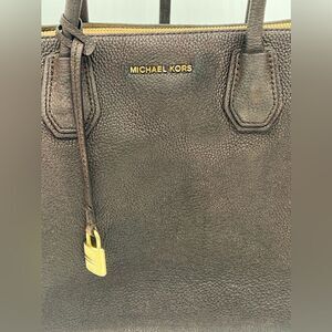 Beautiful Michael Kors top handle handbag with pebbled leather in good used condition. Bag was originally beige but recoloured using professional leather dye. Misplaced the original crossbody strap, a black and gold one is included.