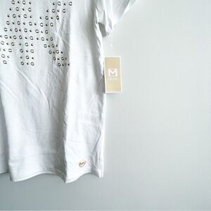 Michael Michael Kors White T-shirt Gold Bling MK Logo Stud Cotton Women's S NWT