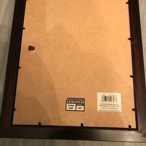 Brown/Black wood frame measures 12"wide x15"length. The photo size is 9.5" wide x 12.5" length