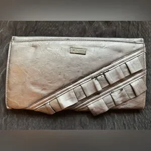 The Cinthia shell shines in pewter-grey metallic faux leather, with a striking double diagonal “tuxedo” ruffle that takes the glam factor up a notch. It’s a style that says, let’s go out tonight! — perfect for adding a bit of sparkle to your collection.