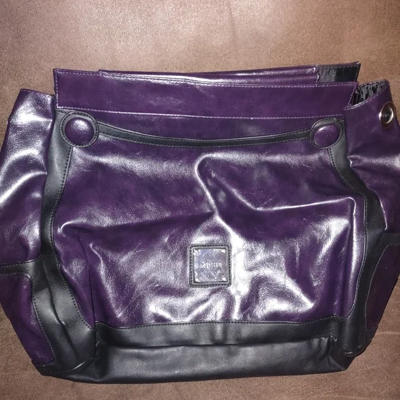 Excellent gently used condition shell. Soft purple and black faux leather with button detail. This will be no use to you without handles and base bag. Base bag and handles not included. Buyer responsible for the shipping costs.