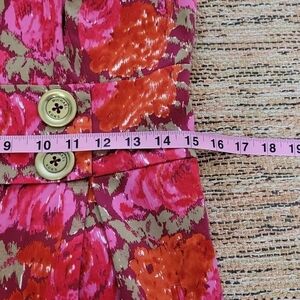 This floral dress has a zipper closure at the back, big gold metal buttons, and even pockets!