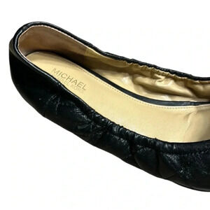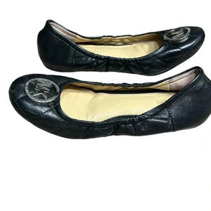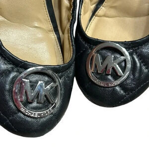 Micheal Kors shoes,women sz 7, black ballet flats ,MK metal logo ,quilt look