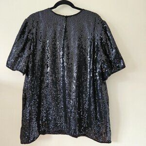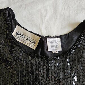 Michel Antoni Top Womens 2X Black Short Sleeve Sequined Silk Witchy Goth Retro