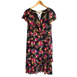 Michel Studio Dress US 12 Floral Party Dress Multi Black Pink Yellow Gre…