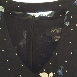 Michel Studio | Made in Canada | Black, White & Blue Floral Print Dress | Sz 1X