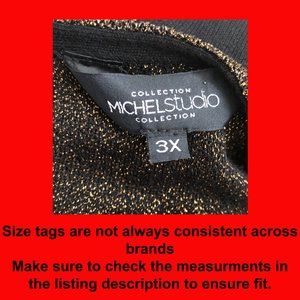 • Tag Size: 3X. Approximate measurements taken lying flat: Bust 25”/Waist 25”/Length from Shoulder 29”/Sleeve Length 5.5”