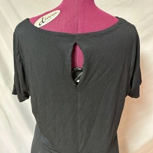 - V neckline - Short sleeves - keyhole peep on back - 95% viscose, 5% elastane - Size 2X