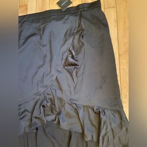MichelStudio black silky dress, ruffle trim, cross over detail on the front.