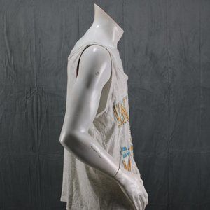This tank top is tagged a men's small (S). The measurements are as follows in inches: