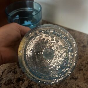 Plastic with glitter inside the liquid 😊 the cups have been stored and sitting for awhile