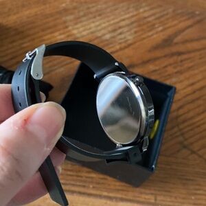 Stainless Steel Watch with Black Leatherette Band