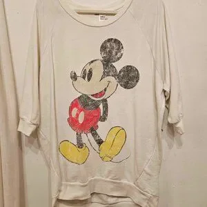 Disney Licensed Mickey Mouse Sweater, 3 quarter sleeve. Comfortably fits size Large but would look super cute oversized too! Well worn but it adds to the cute vintage look. No visible flaws besides the wear on Mickey.