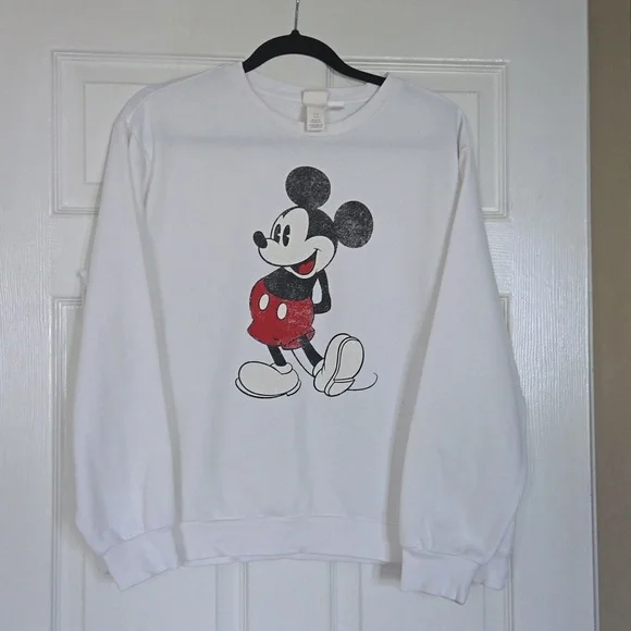 white crew neck Mickey Mouse sweater
