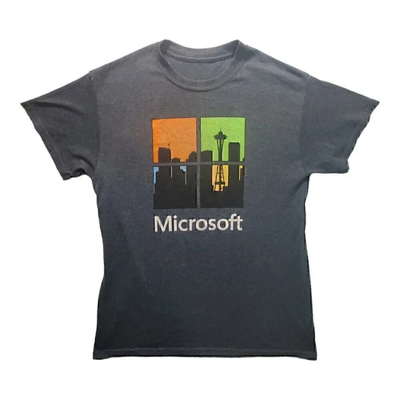 Microsoft Windows Seattle Skyline Graphic T Shirt Men's Gray Short Sleeve Tee
