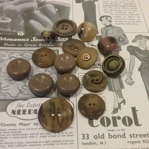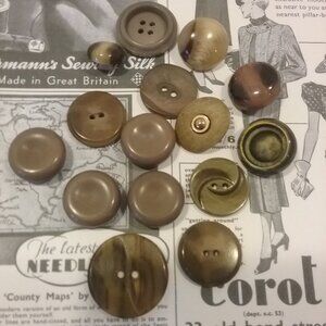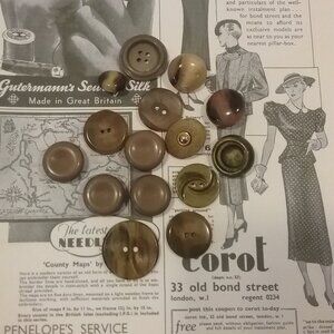 This is a wonderful mixed lot of buttons from the mid century 1950s & 1960s. They are in varying shades of brown, with varying shapes and sizes.