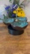 Teal blue interior glaze, dark brown outer glaze, chrome-tone handle