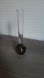 This MCM Bud Vase is made of hand blown glass , with a narrow silhouette and amber colored round base that features a controlled bubble pattern.