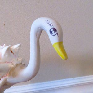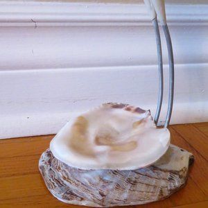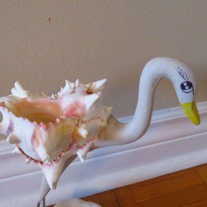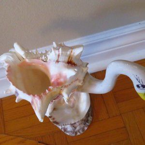 Mid Century Metal and sea Shell Bird Sculpture, ostrich ceramic head ,ashtray?