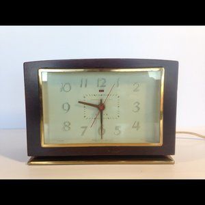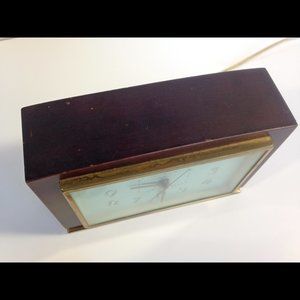Mid Century Modern Art Deco General Electric Alarm Clock Wood Brass 7H188 WORKS
