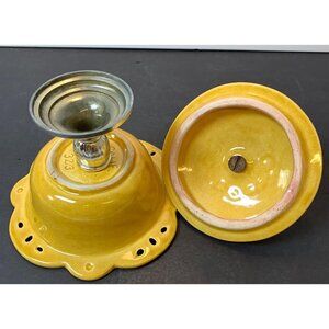 Elevate your kitchen or display cabinet with this vibrant Mid Century Modern California Pottery Pedestal Dish, complete with a lid. Its sunny yellow hue and sleek design are reminiscent of the era's charm, making it a standout piece for any collector or enthusiast of MCM aesthetics. The dish features practical handles, ensuring ease of use and transport.