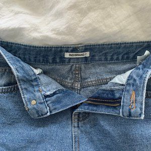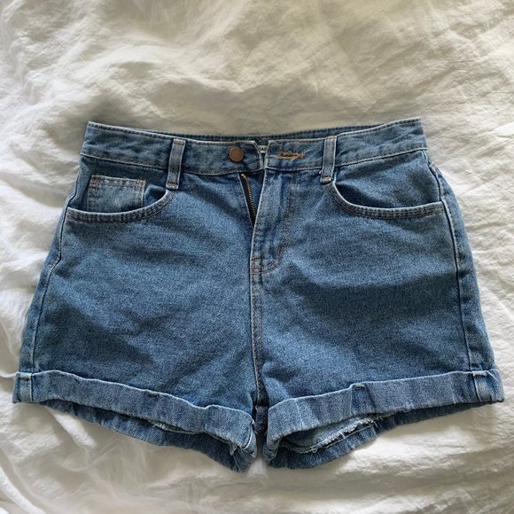 Korean Indibrand Mid Rise Jean Shorts w/ Cuffed Hem Light Blue Denim (No Stretch) Fits Size 25/26W