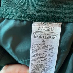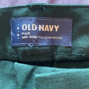 NWT Old Navy medium rise pixie pants in a dark forest green. Made with 5% spandex so they’re great for work when you want to look professional but still be comfortable.