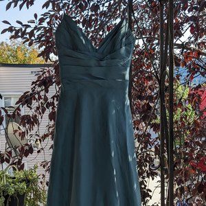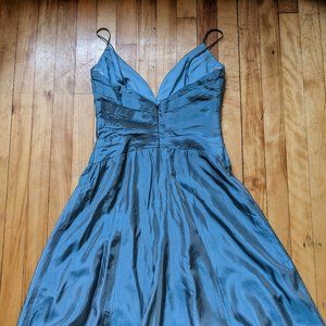 Mid length black tie dress - sz4-6 us shiny silvery teal