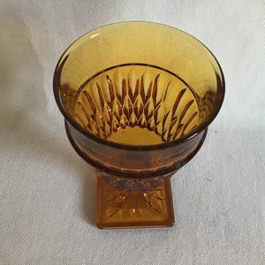 INDIANA GLASS Vintage Mount Vernon Amber Stemmed Glass Square Base Goblet / Glass