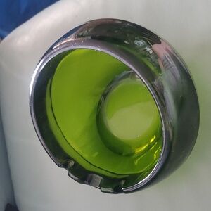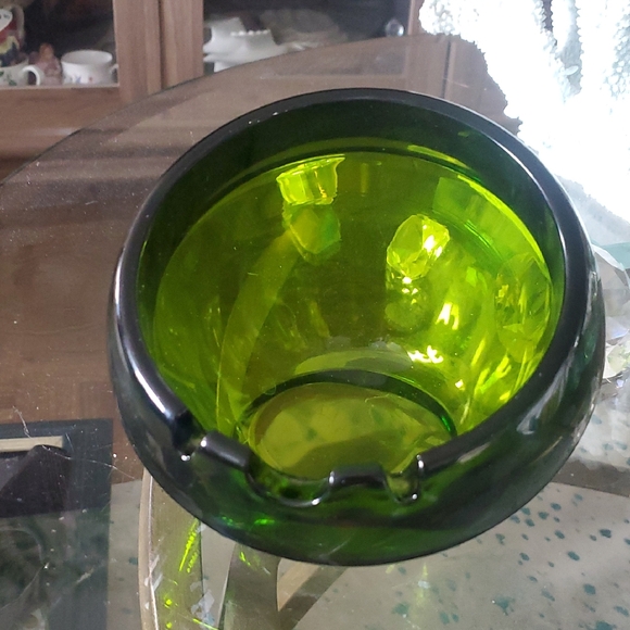 Vibrant green glass ashtray. Perfect for decor or use. Rare mid century orb large size...