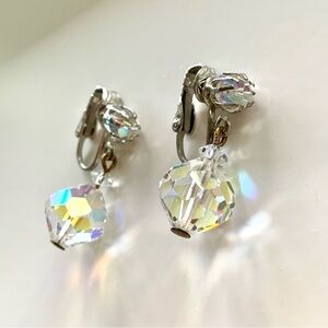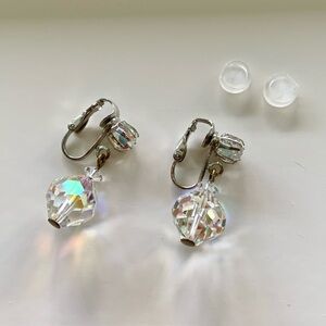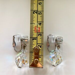 Lovely aurora borealis cut crystal drop earrings. Mid century clip ons.