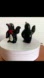 Glazed black with painted red bow and bow tie and cork stoppers. Hand written “West Summerland B.C.” on bellies.