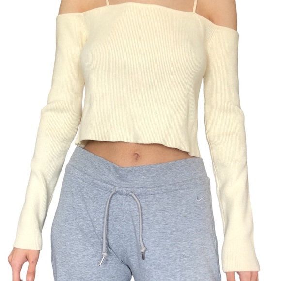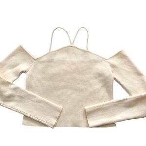 Ribbed knit cream top, cut out shoulders with two straps