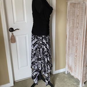 Midi Dress with Sharkbite Hem and Ruched Bodice, Size 10