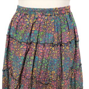 Custom Made Elastic Waisted Colorful Tiered Floral Print Skirt